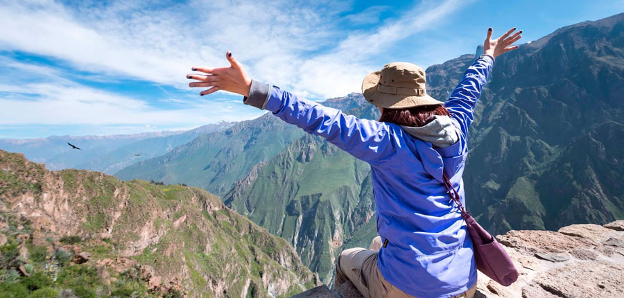 Finalmente llega el día esperado para ver el vuelo de los cóndores, salida del hotel muy temprano, después del desayuno, para luego tomar rumbo hacia el mirador Cruz del Cóndor, pasando por impresionantes paisajes a lo largo de la orilla del cañón. Durante el trayecto se detendrán en puntos claves, para ver tumbas colgantes que datan de la época pre colombina, terrazas agrícolas de más de mil años, entre otros. Luego de 2 horas llegarán a la famosa Cruz del Cóndor, dispondrán el tiempo necesario para admirar la belleza natural que el cañón ofrece y observar el majestuoso vuelo del Cóndor. Culminando esta impresionante vista emprenderán el viaje con dirección a Chivay, en el camino visitarán algunos pueblitos típicos, En Chivay harán una última parada para almorzar. Finalmente retornarán a la bella ciudad de Arequipa. llegando aproximadamente a las 17:00 horas.